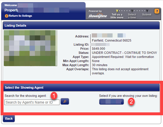 - If you are scheduling a showing for yourself or if the buyer's agent is not a SmartMLS member, use the button on the right to select yourself as the showing agent.